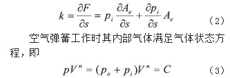 空氣彈簧的支承和彈性作用的大小主要取決 于空氣彈簧內的壓縮氣體密度,因此空氣彈簧的承載力F可表示為: