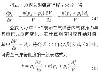通過承載力F對彈簧行程s求導可得空氣彈簧剛度k。